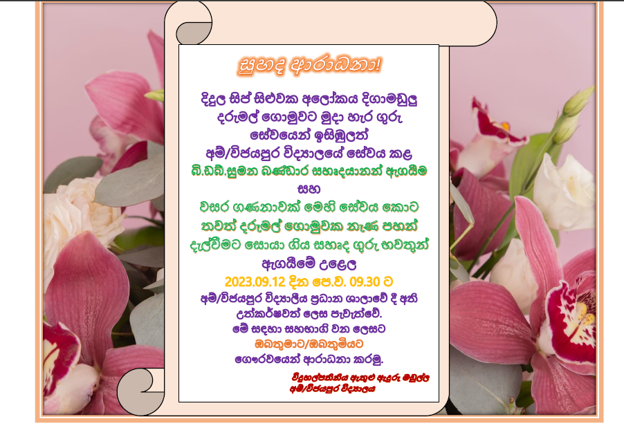 සාර්ථකත්වයට යොමු කිරීම පාසලේ මූලික අභිප්රායයි.